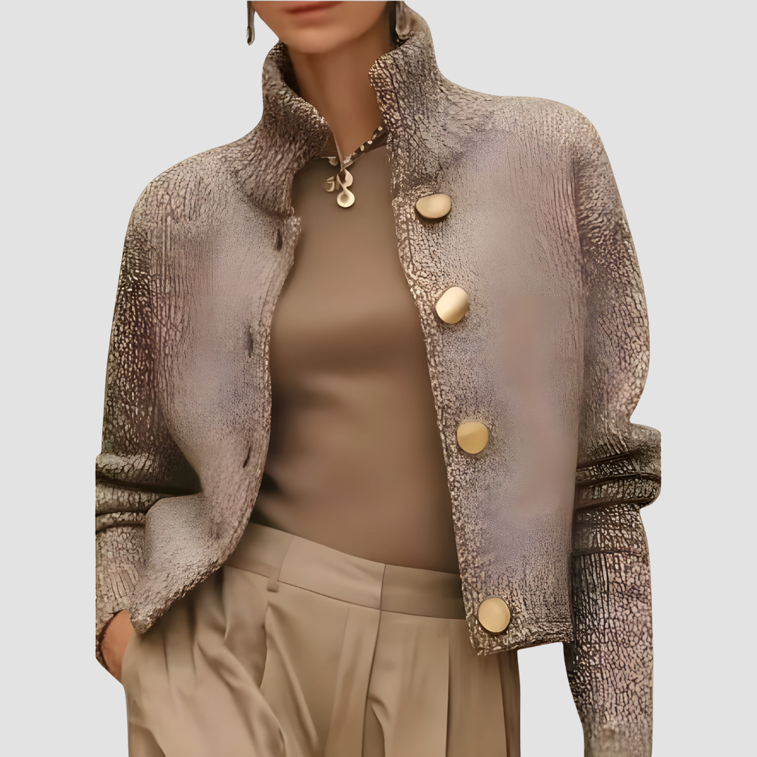 The Nayana Jacket blends luxurious texture with bold gold-toned buttons for a look that feels instantly polished. Perfect for professional settings, daytime outings, and elegant evenings.