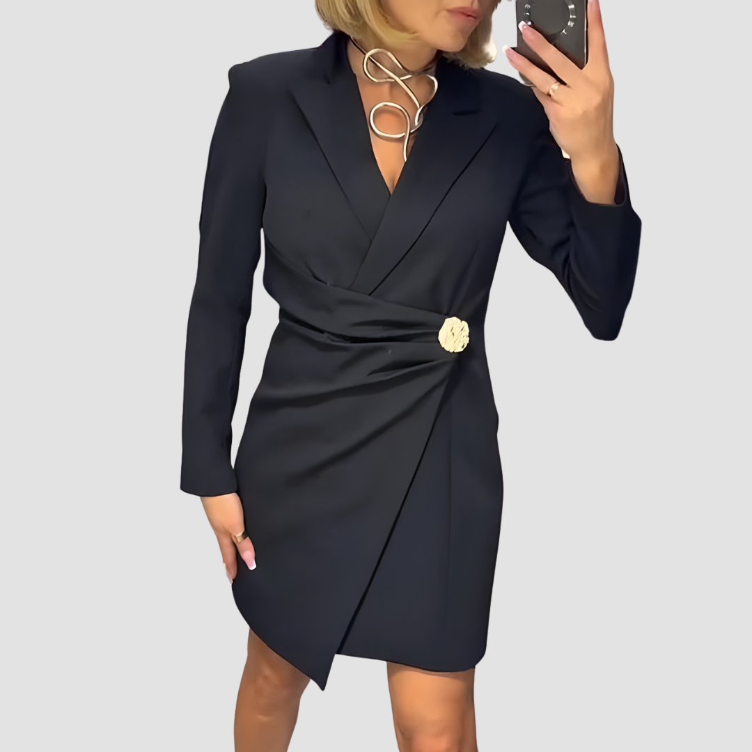 The Valerie Dress blends the sharp lines of a blazer with a smooth feminine silhouette designed to flatter effortlessly. Perfect for workdays, dinners, or any moment you want to feel poised, refined, and beautifully confident.